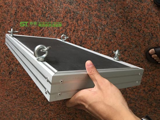 产品结构:四周铝合金框内置欧文斯科宁吸声棉,外包吸声玻纤难燃/不燃吸声布
